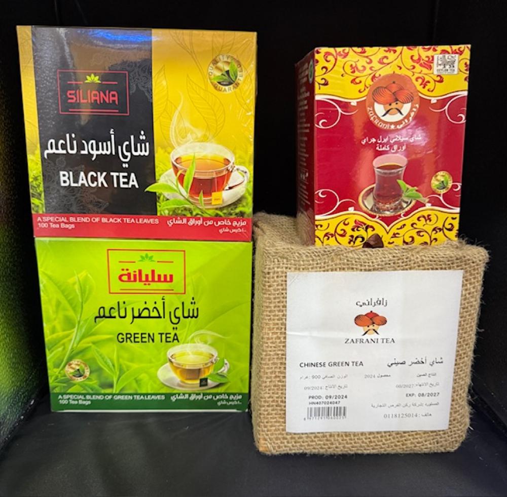 1 علبه شاي زافراني اخضر تلقيمخ 900 جرام .