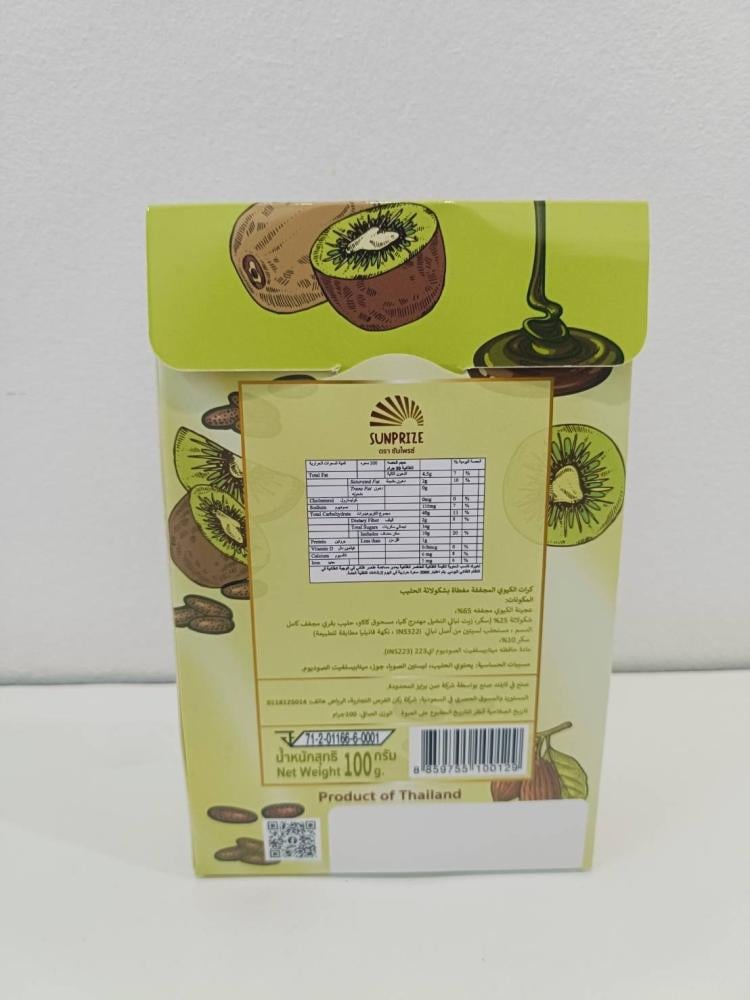 كرات الكيوي الطبيعي مهروس مجفف مغطى بشكولاتة الحليب 70 جرام انتاج تايلند